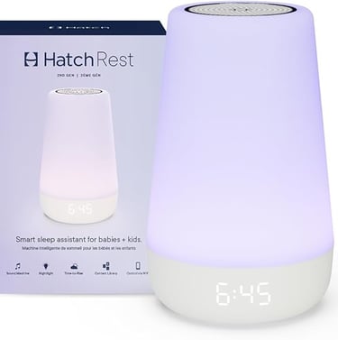 This smart sleep device combines a sound machine, night light, and time-to-rise trainer — all in one. The Hatch Rest 2nd Gen adapts as baby grows, helping families build healthy sleep routines.